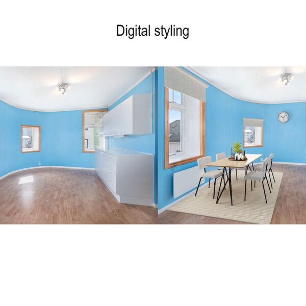 Det skjer at en eiendom er helt tom for møbler. Da kan det som oftest være fint å få inn en stylist for evt. fullstyling. Men en ofte brukt løsning kan være å style 1-3 rom digitalt.